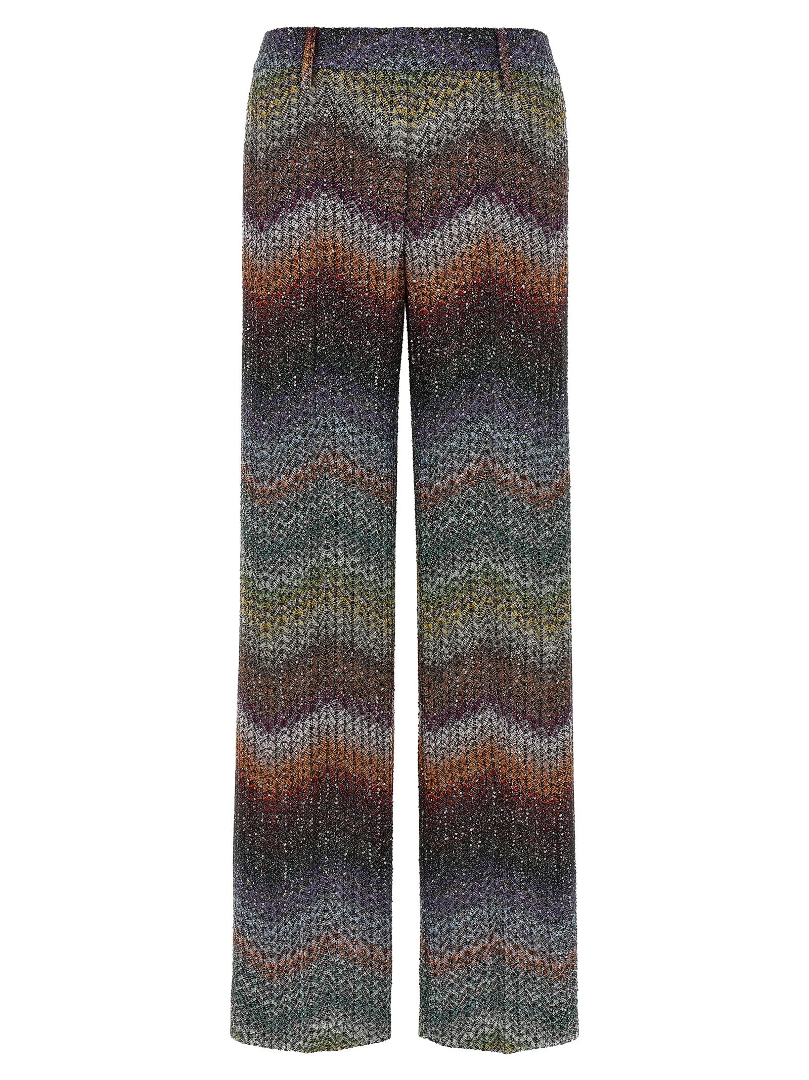 Caperdoni loom sequined viscose lame pants with zigzag weave, straight leg, stretched pleat, back elastic waistband, trompe l'oeil flap, pockets. - Colour: Multicolor - Composition: 69% viscose 16% metal 15% polyamide - Country Of Manufacture: Italy - Dimension: true to size fit - MPN: DS26SI07BC005YS72P0