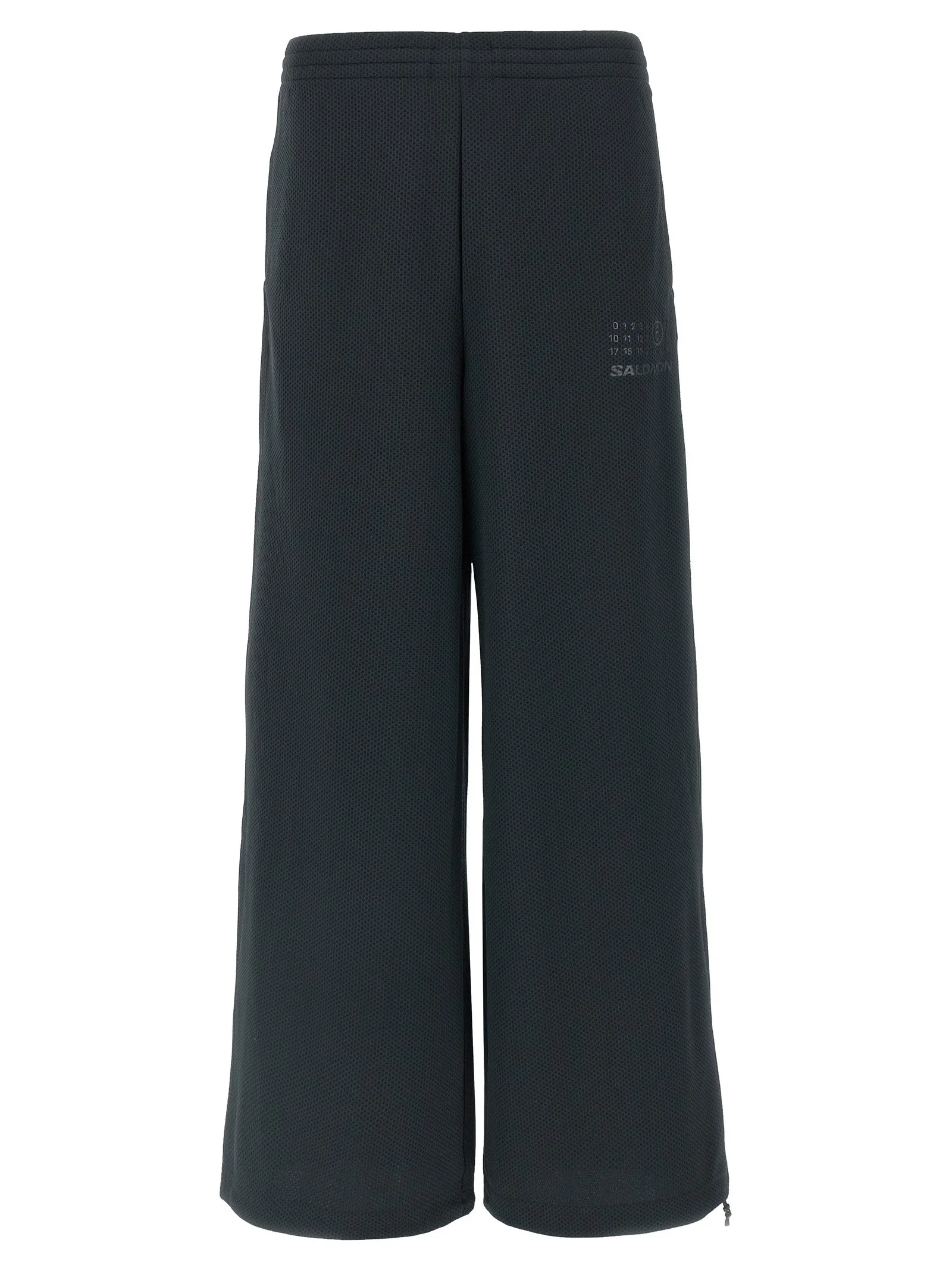 Capsule joggers MM6 Maison Margiela x Salomon in honeycomb technical fabric, embossed 'Numeric signature MM6' at the front, drawstring elastic waistband, pockets, wide and straight leg, back 'White Stitch Line', drawstring at the hem. - Colour: Black - Composition: 100% polyester - Country Of Manufacture: Indonesia - Dimension: true to size fit - MPN: SH0KA0058M20139899