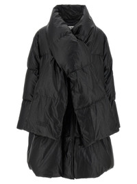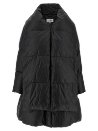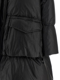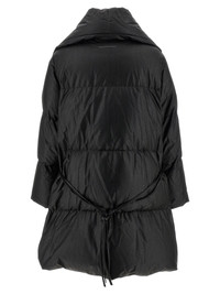 Long down jacket in quilted leather-effect coated viscose with goose down padding, collar with scarf insert to tie or leave along the waist, zip and snap button closure on the front, pockets, long sleeves with knitted cuffs. - Colour: Black - Composition: 100% viscose - Country Of Manufacture: Italy - Dimension: Comfort fit - MPN: S52AA0193S53057900