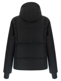 'Elfin' ski jacket in water-repellent quilted tech fabric with goose down padding, adjustable and removable hood, high neck with tone-on-tone corduroy lining, YKK® AquaGuard® Highly Water-Resistant zip closure and front snap buttons, pockets, long sleeves with windproof cuffs and logo patch applique, drawstring hem and inner gaiter. - Colour: Black - Composition: 100% polyester - Country Of Manufacture: Romania - Dimension: true to size fit - MPN: K20971A00014597MO999