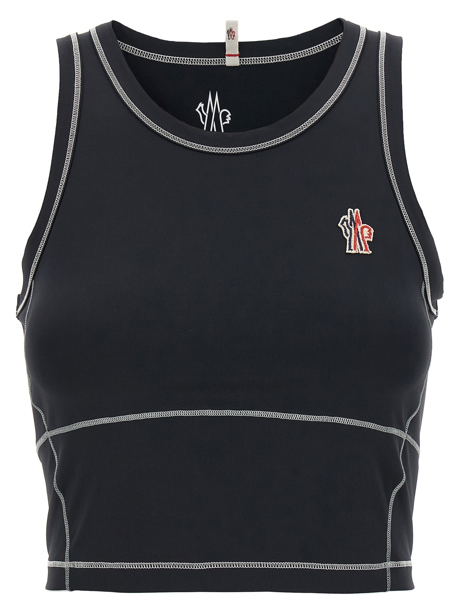 Stretch nylon blend fabric top with contrast stitching, front logo patch, crop style, crew neck. - Colour: Black - Composition: 78% polyamide, 22% elastane - Country Of Manufacture: Italy - Dimension: Slim fit - MPN: K10988P00001899YG999