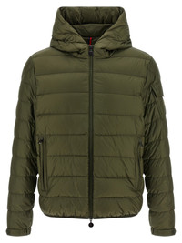 'Najan' quilted long saison ue down jacket slightly padded with goose down padding, hood, front zip closure, pockets, long cuffed sleeves, felt logo patch, elastic hem. - Colour: Green - Composition: 100% polyamide - Country Of Manufacture: Moldova - Dimension: true to size fit - MPN: K20911A00009597YF825