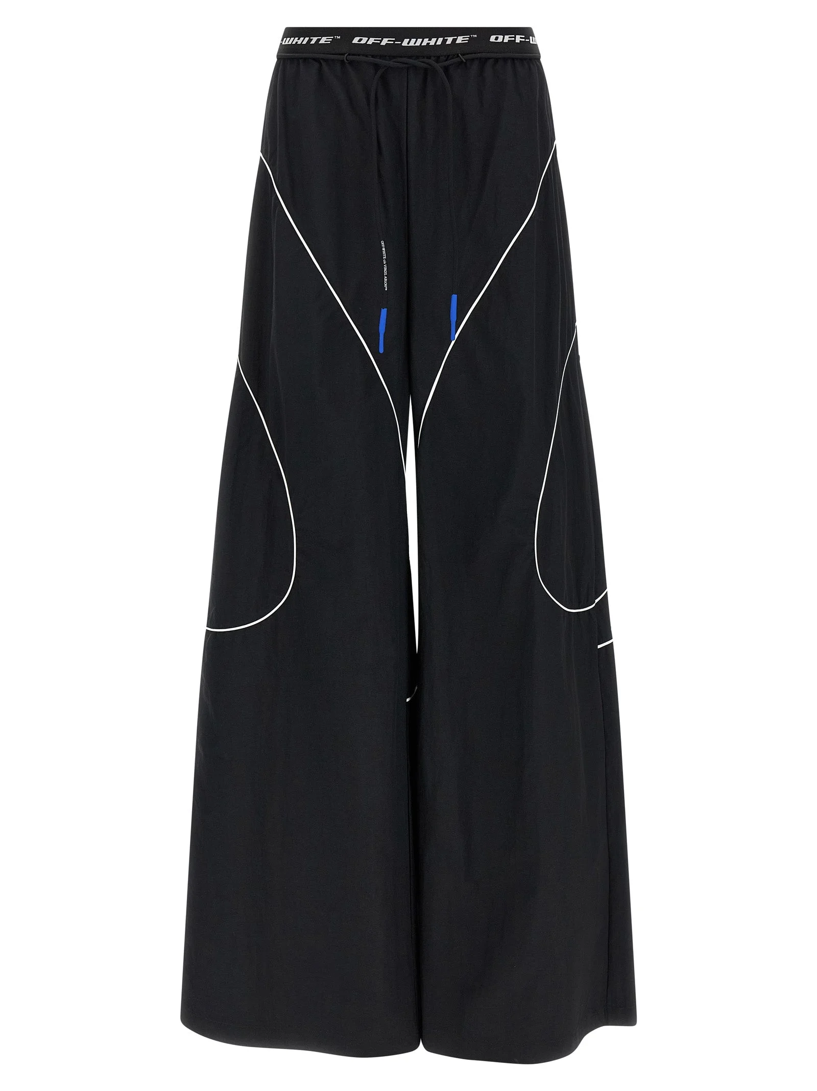 'Logoband Track' joggers in technical fabric with contrast details, logo elastic waistband with drawstring, pockets, extra wide leg. - Colour: Black - Composition: 100% polyamide - Country Of Manufacture: Romania - Dimension: true to size fit - MPN: OWVI019S26FAB00110011001
