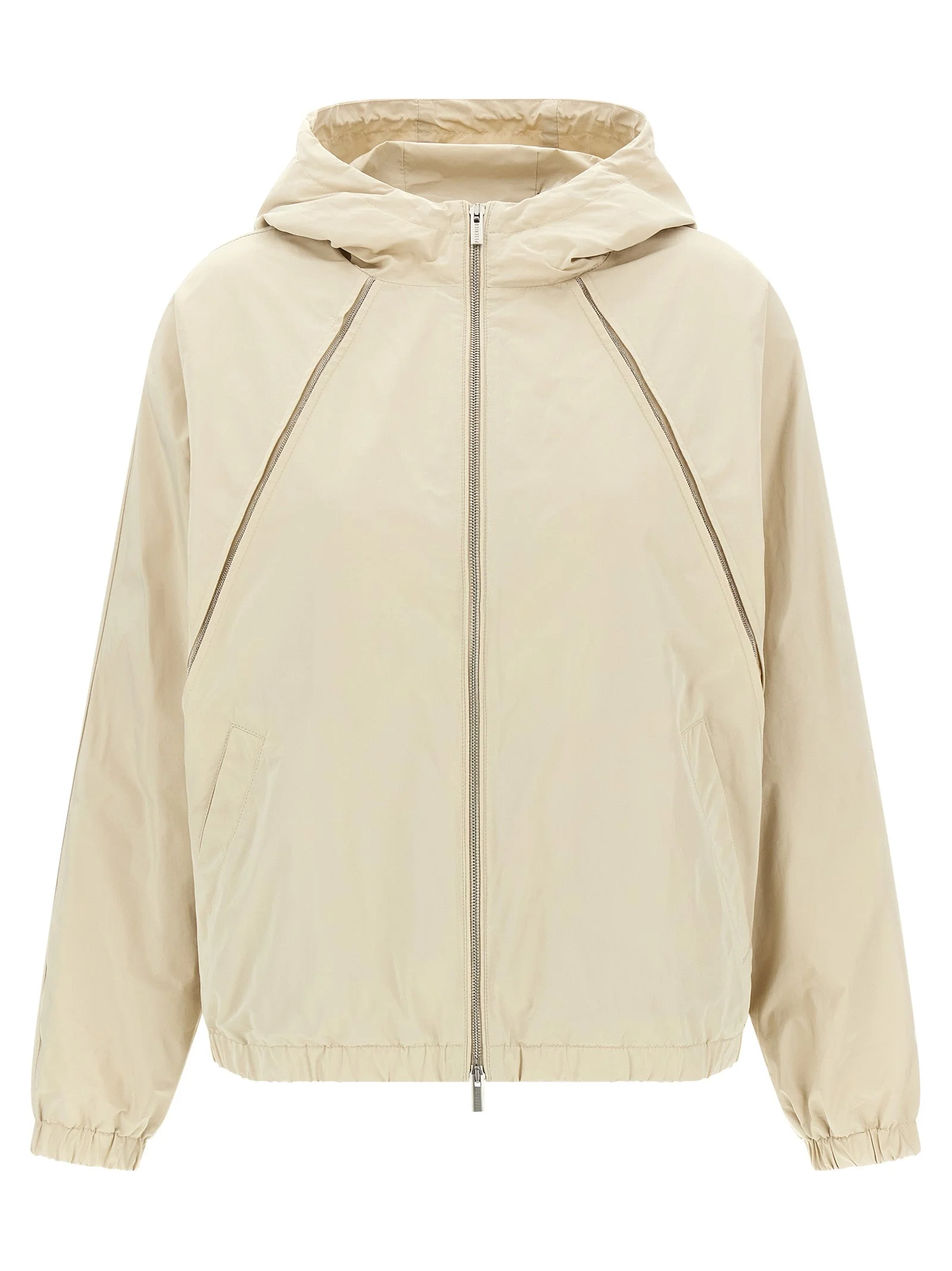 Windbreaker in technical fabric, cotton blend lining, adjustable hood, metal 'Punto Luce' detail and front zip closure, pockets, long sleeves with elastic cuffs, elastic on the hem. - Colour: Beige - Composition: 100% polyester - Country Of Manufacture: Italy - Dimension: oversized fit - MPN: A2512506953944