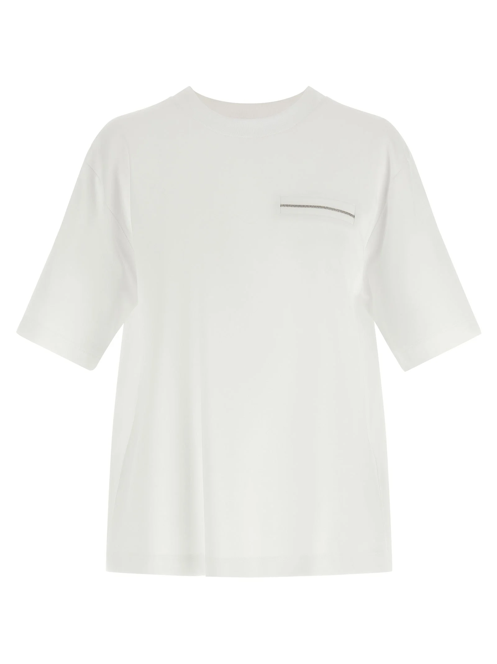 T-shirt consisting of cotton jersey front, trompe l'oeil pocket with metal 'Punto Luce', short sleeves and double layer back in cotton organza with pleats, crew neck. - Colour: White - Composition: 94% cotton 5% polyamide 1% elastane - Country Of Manufacture: Italy - Dimension: true to size fit - MPN: A06235J05635C01C