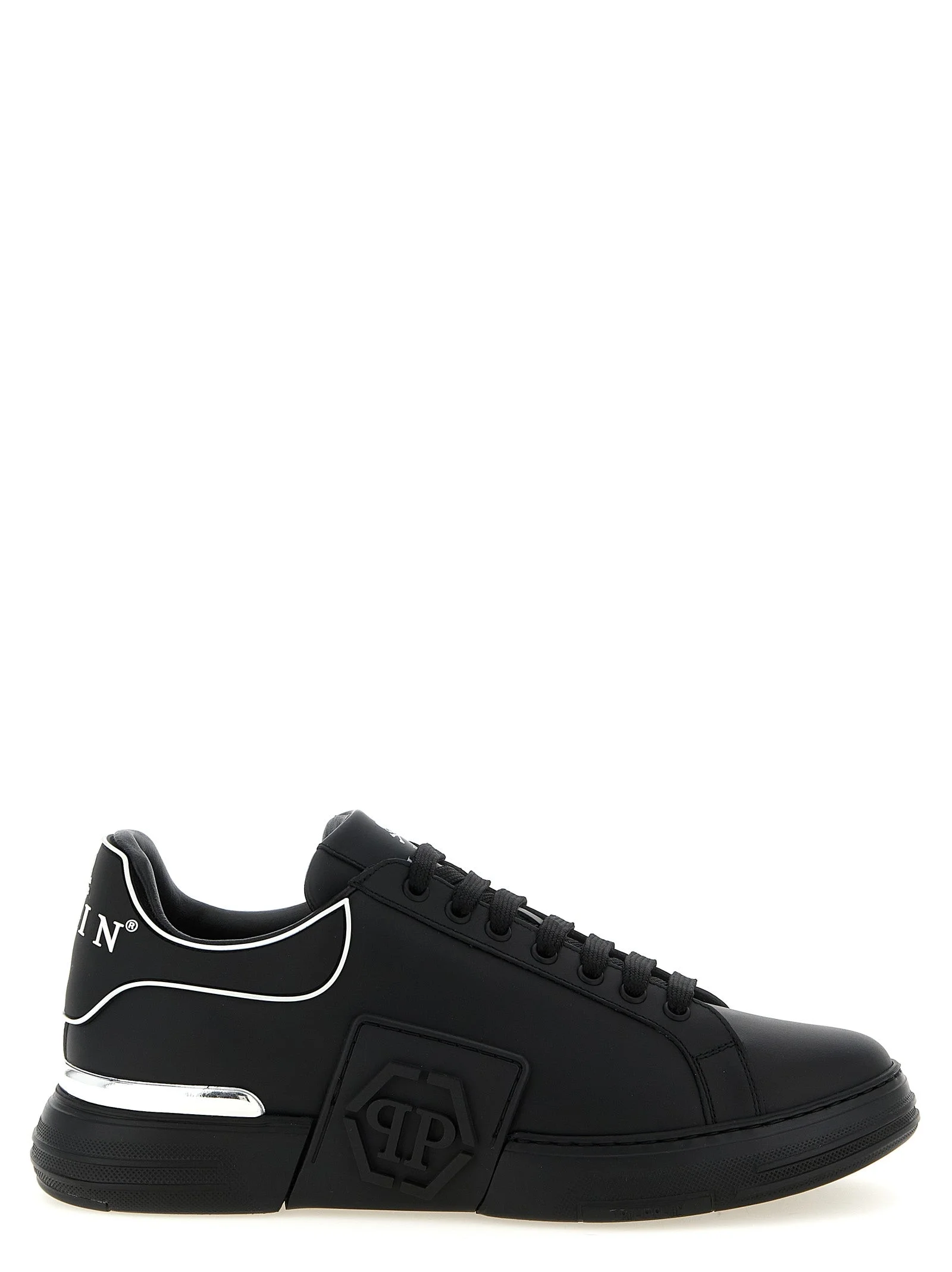 Premium leather 'Phantom Kick$' sneakers, 3D silicone logo details on the side and heel, lace-up closure, cushioned insole, rubber sole. - Colour: Black - Composition: 100% cow leather (Bos Taurus) - Country Of Manufacture: Italy - Dimension: EU MEN - MPN: SAFSUSC0904PLE005N0202