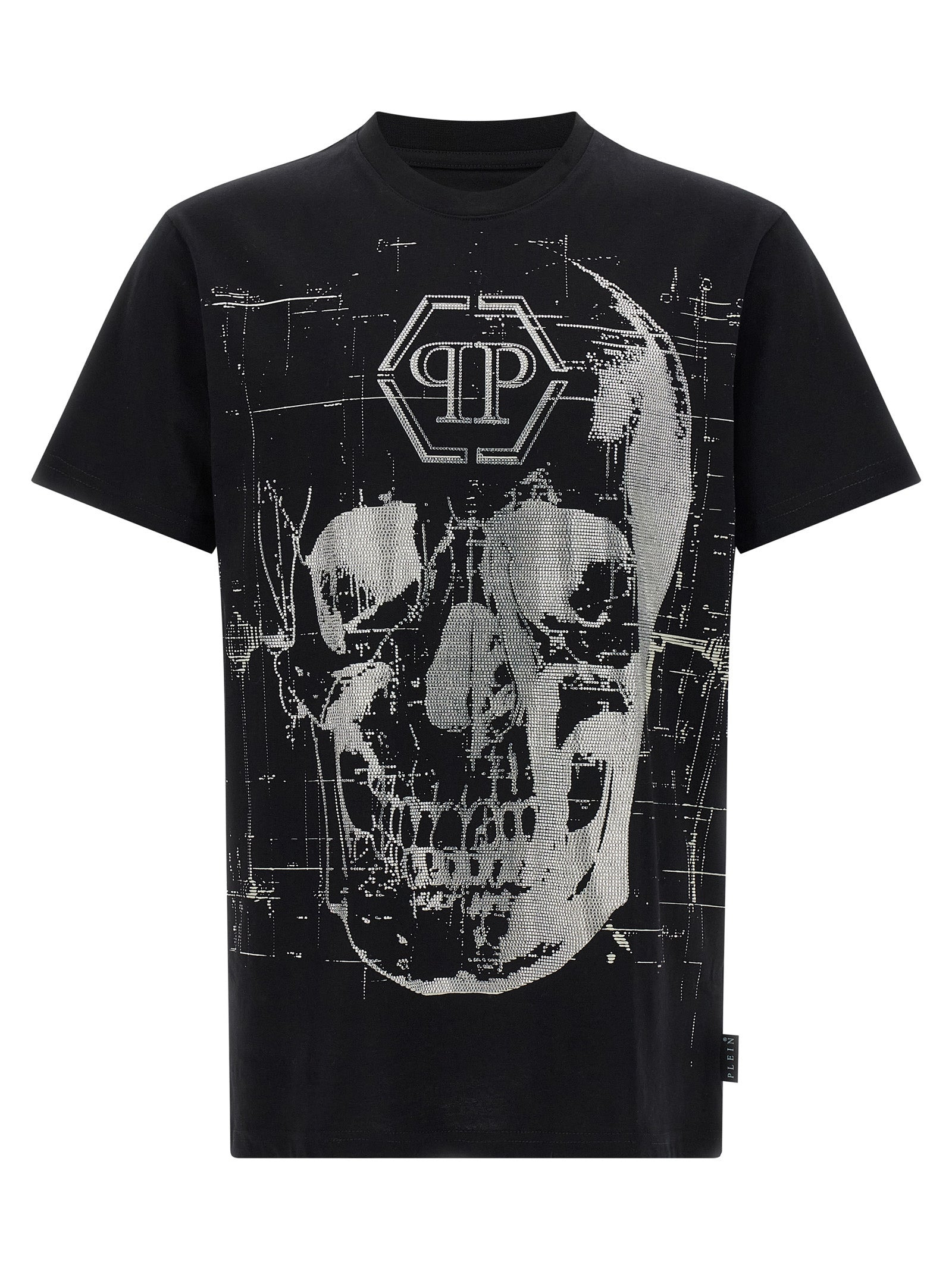 Cotton, crewneck T-shirt with front 'Skull Strass' logo applique and short sleeves. - Colour: Black - Composition: 100% cotton - Country Of Manufacture: Turkey - Dimension: True to size fit - MPN: FAECMTK8439PJY002N02