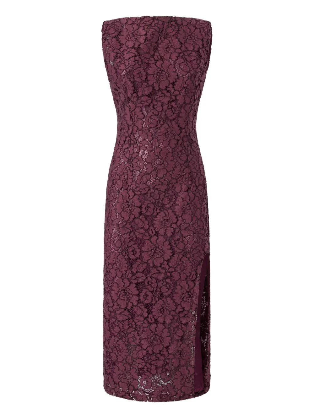 FLORAL LACE DRESS WITH PLUNGING REAR NECKLINE