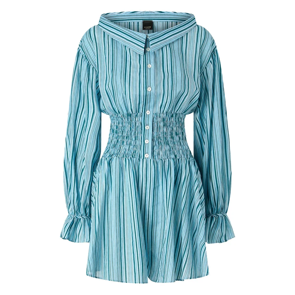 light blue striped pattern button fastening shirred waist long sleeves tie cuffs - Colour: Blue, Green - Composition: Cotton: 100.0% - Country Of Manufacture: Tunisia - MPN: 106659A36EES6 - Size Family: IT