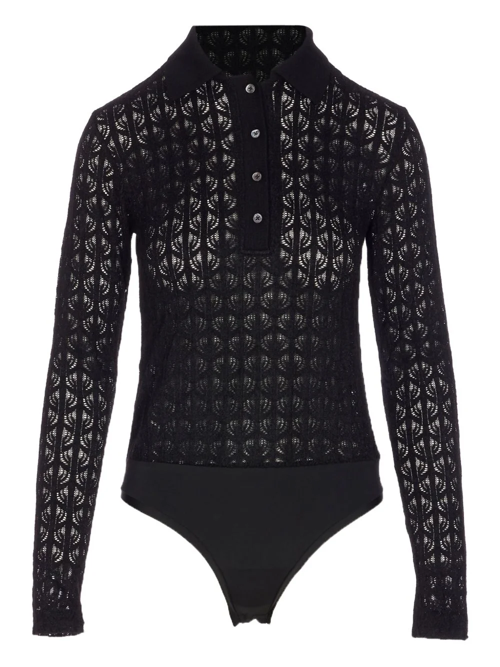 black polo neck button fastening long sleeves open knit lace panel Just a reminder that this piece must be tried on over your own garments. - Colour: Blacks and greys - MPN: YOANA105977A2YIZ99
