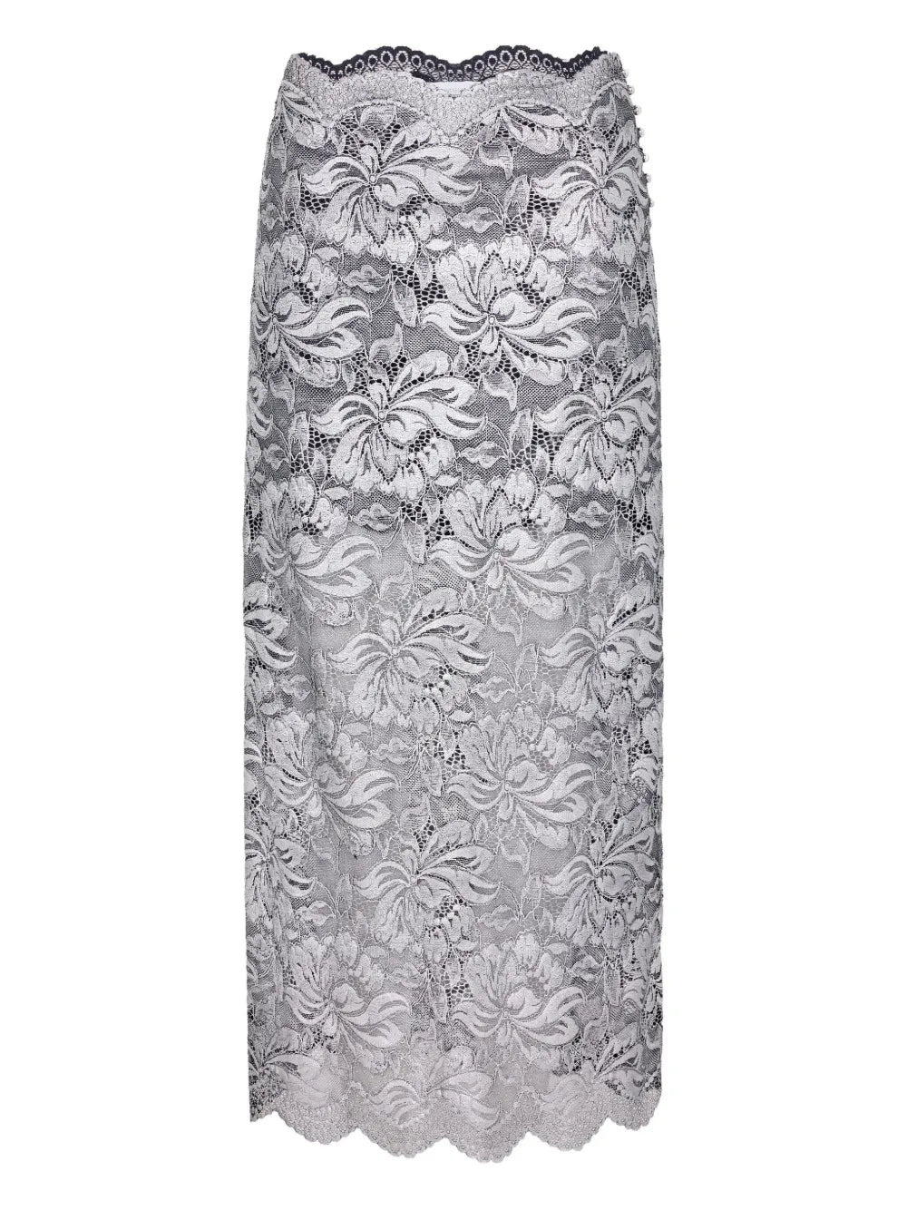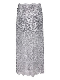 Floral midi skirt Features Gray Floral lace design Side button closure Scalloped hem Lined interior High-waisted design Composition 90% polyamide, 10% elastane Washing instructions Read the manufacturer`s instructions ID 25AJJU598PA0244 - Colour: Metallic - Composition: Polyamide, MATIERE PRINCIPALE:90% POLYAMIDE 10% ELASTHANNE - Country Of Manufacture: Tunisia - Dimension: KG 0,5 - MPN: 25AJJU598PA0244V912BLACKSILVER