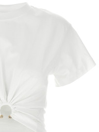 Cotton t-shirt with front metal piercing that creates draping, crop model, crew neck, short sleeves. - Colour: White - Composition: 100% cotton - Country Of Manufacture: Portugal - Dimension: true to size fit - MPN: 23AJTO539CO0485P109