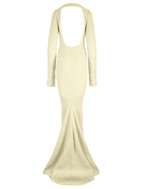 Long dress in light pastel green alpaca and wool ribbed knit by Rick Owens, with extra long sleeves, wide neckline on the back, mermaid skirt with train. Reverse stitching detail. Fitted fit. - Colour: Green - Composition: 4�8�%A�L�P�A�C�A+3�0�%� �N�Y�L�O�N+2�0�%W�O�O�L+2�%E�L�A�S�T�A�N�E - Country Of Manufacture: IT - MPN: RO02D3688KWPL25