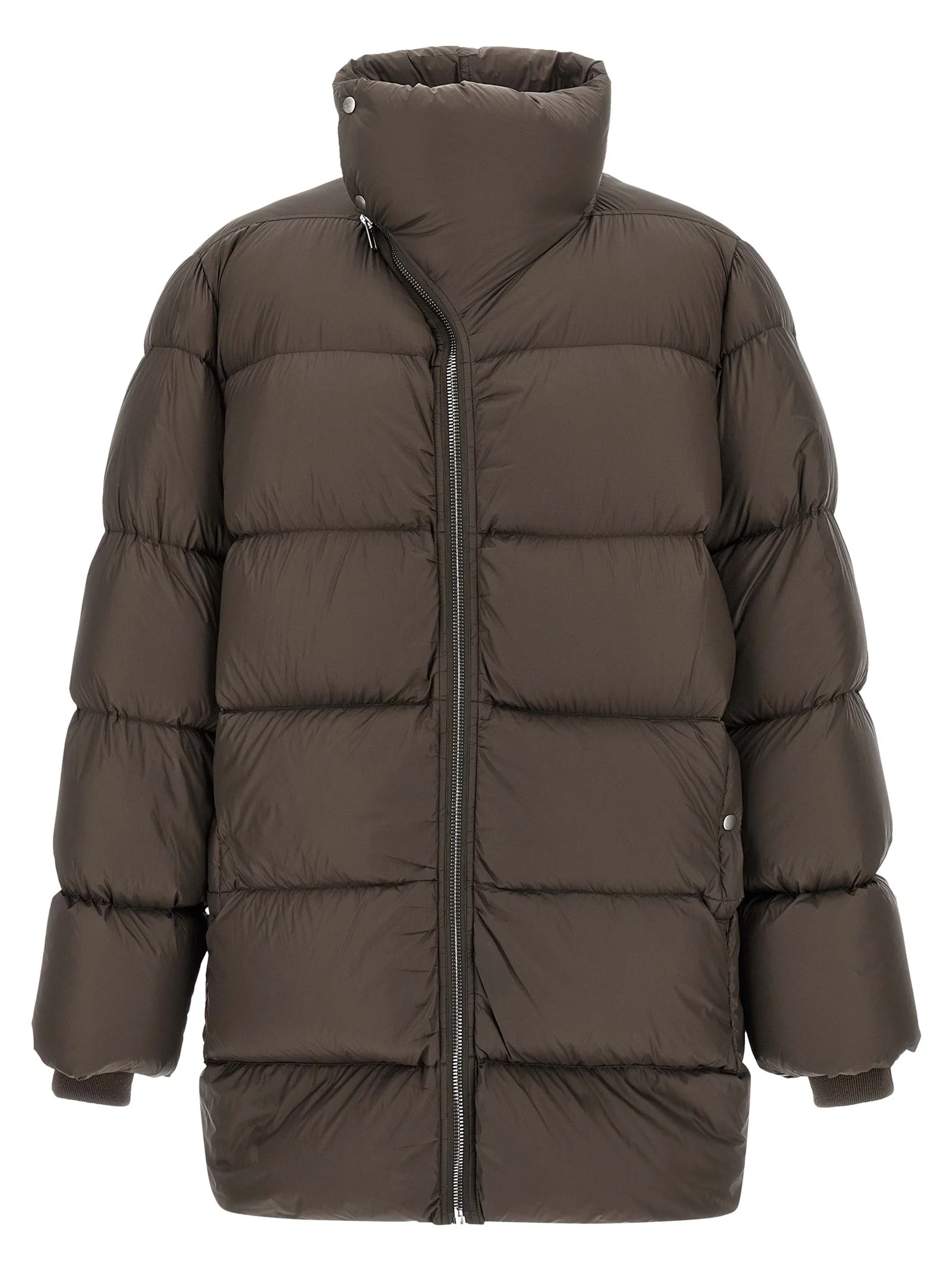 Long 'Turtle' quilted nylon down jacket with goose down padding, standing collar, asymmetrical front zip closure, pockets, long sleeves with stretch knit cuffs, cotton strap with rivets on the back rack. - Colour: Brown - Composition: 100% nylon - Country Of Manufacture: Italy - Dimension: Comfort fit - MPN: RU02E1791NPD378