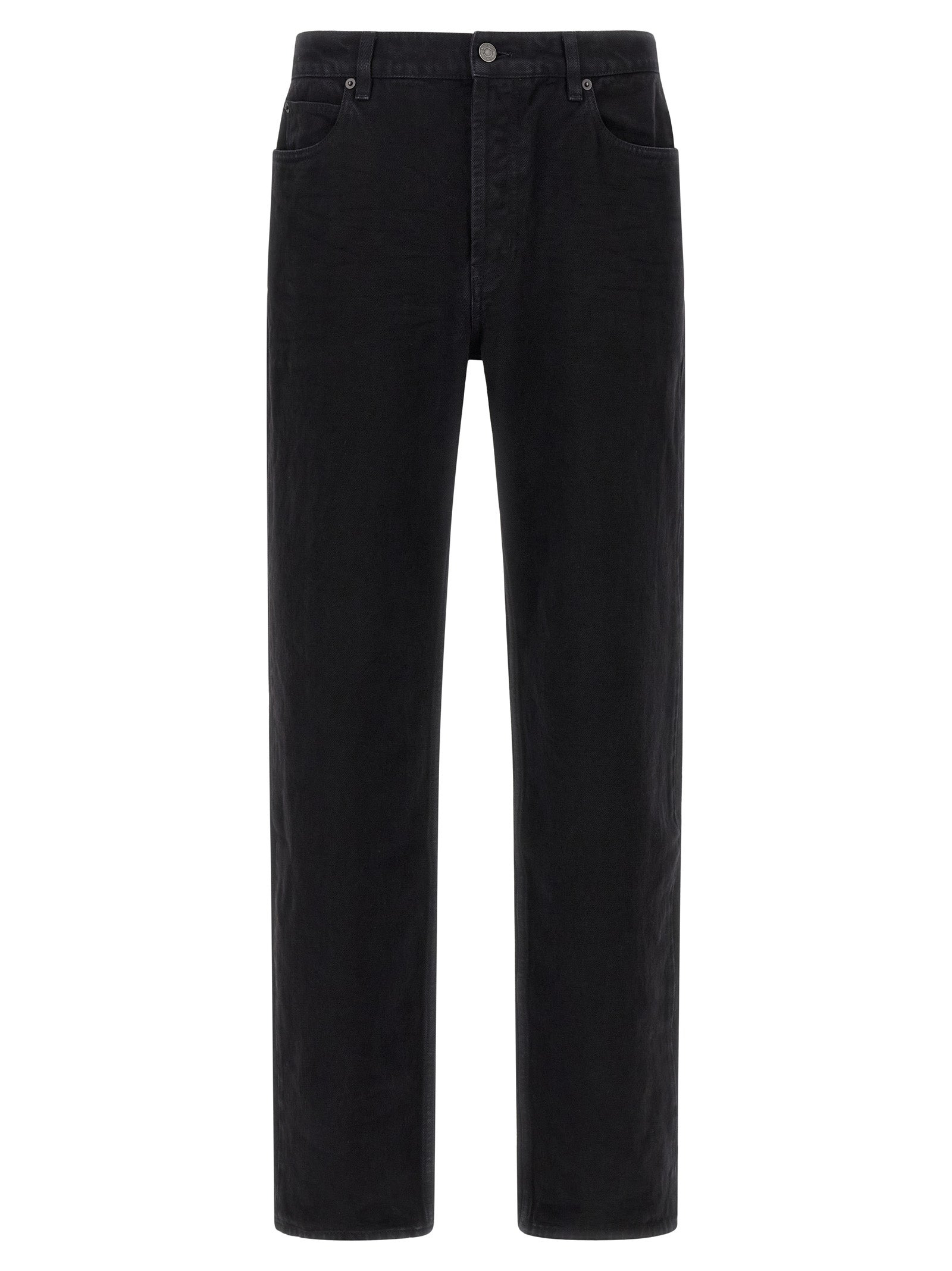 Garment-dyed cotton denim jeans with straight leg, five pockets, front button closure, back logo tag. - Colour: Black - Composition: 100% cotton - Country Of Manufacture: Italy - Dimension: true to size fit - MPN: 837398Y29WA1294