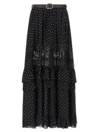 'Black And Gold Chiffon Lace Maxi' metallic fil coupe skirt with semi-transparent lace insert, flared flounces model, elastic waistband, partially lined, removable leather belt. - Colour: Black - Composition: 99% viscose 1% metal - Country Of Manufacture: China - Dimension: true to size fit - UK sizing - MPN: RS26196XSKBBLACK