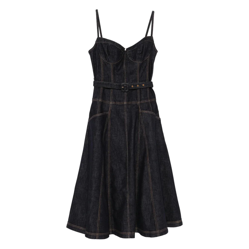 blue panelled design belted rear zip fastening buckle fastening thin shoulder straps stitched detailing - Colour: Blue - Composition: Cotton: 94.0%, Polyester: 5.0%, Elastane: 1.0% - Country Of Manufacture: China - MPN: RS26815MABLBLUE - Size Family: UK