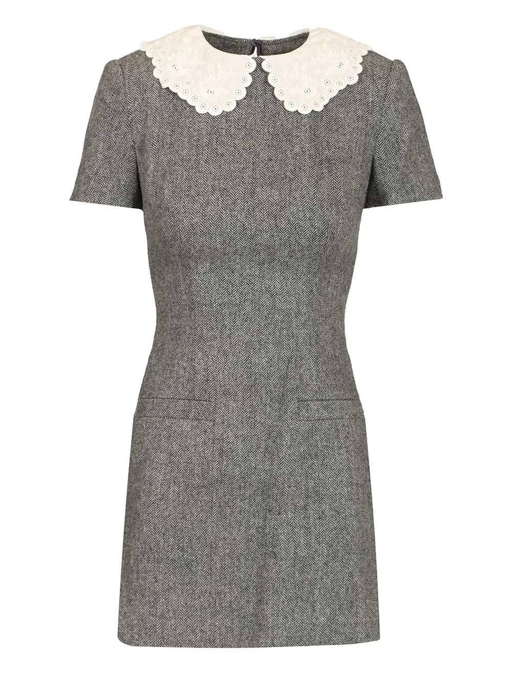 Grey Herringbone Collared Mini Dress Dresses Grey