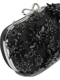 Black Satin Floral Crystal Clutch Bag