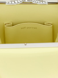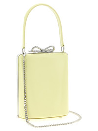 'Yellow leather bag' leather handbag with metal details, fixed handle, snap closure with metal bow detail with rhinestones, front logo print. - Colour: Yellow - Composition: 100% leather - Country Of Manufacture: China - Dimension: W 14 x H 17 x W 8 cm - MPN: PF25325YYELLOW