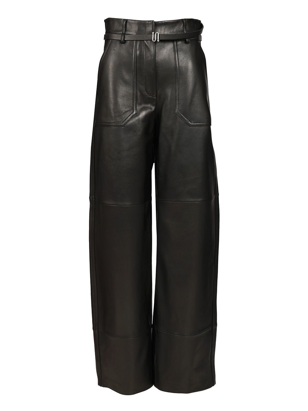 Nappa trousers by Sportmax, with double-wrap belt at the waist and maxi squared and stitched pockets on the front, wide leg that tightens at the bottom - Colour: Black - Composition: leather of Lamb leather Ovis aries aries India - Country Of Manufacture: IN - MPN: 2522436011600010001