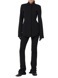 Viscose Knit Shirt - RUNWAY - BLACK Hybrid and versatile, this stretch viscose knit shirt accentuates the silhouette with deep darts at the bust. The hidden button placket and long sleeves keep the look clean. Stretch Viscose Knit Shirt Fits snugly at the waist Shirt collar Concealed placket with exposed top button Deep darts at the bust Regular fit 72% viscose, 28% polyester. ID 2522346063600 - Colour: Black - Composition: Viscose, in maglia 72% Viscosa, 28% Poliestere - Country Of Manufacture: Not Selected - Dimension: KG 0,5 - MPN: 2522346063600NERO