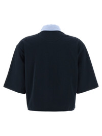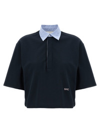 Pique cotton polo shirt with poplin cotton collar, front 3-button closure, side splits, front logo embroidery, short sleeves. - Colour: Blue - Composition: 99% cotton, 1% polyester - Country Of Manufacture: Italy - Dimension: True to size fit - MPN: 6J04313SQA234000