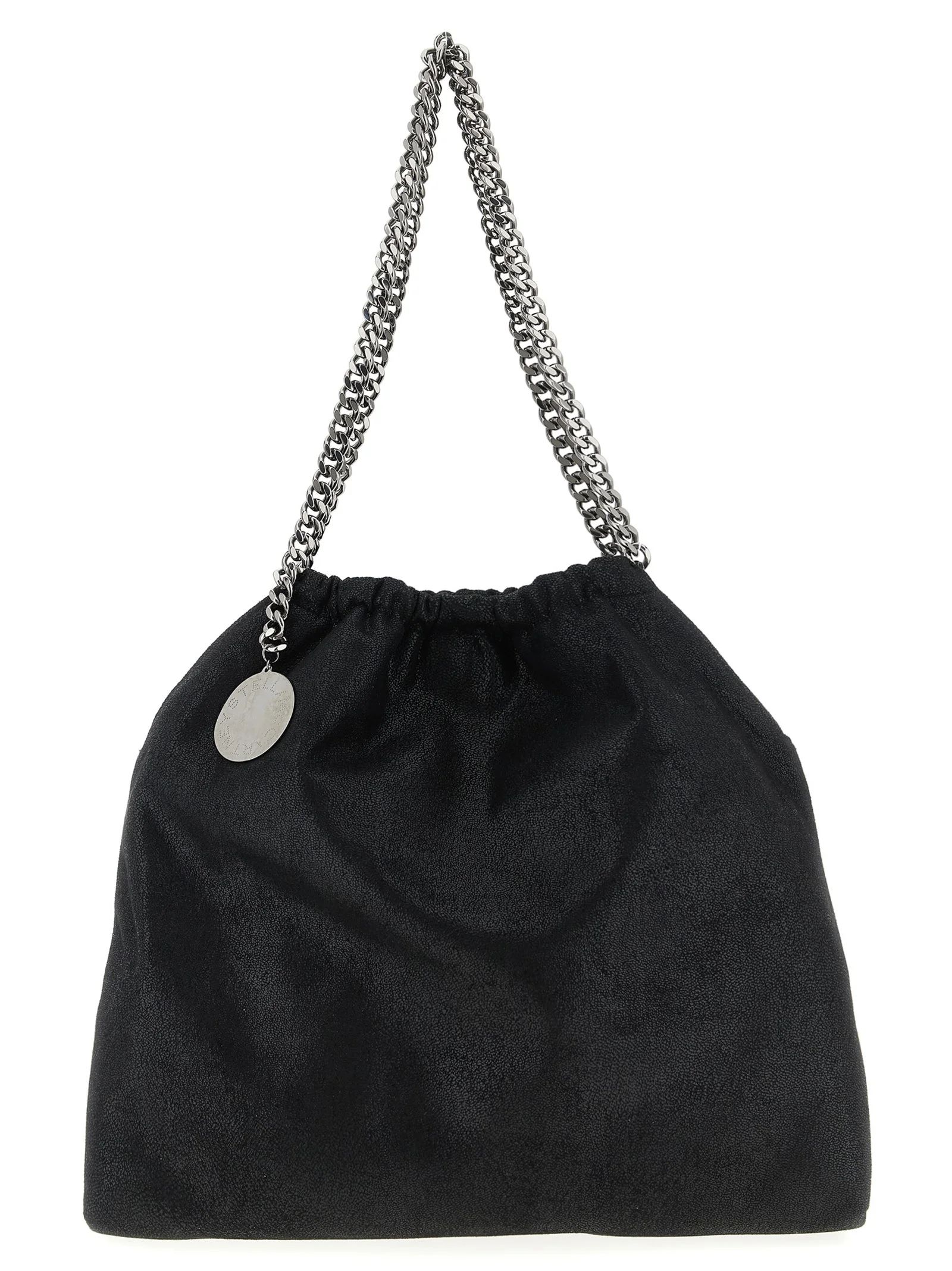 'Falabella Drawstring' shoulder bag in Shaggy Deer with magnetic closure and curl, chain handles with logo charm. - Colour: Black - Composition: 100% polyester - Country Of Manufacture: Italy - Dimension: W 39 x H 35 x D 10 cm - MPN: 7B0180W91321000