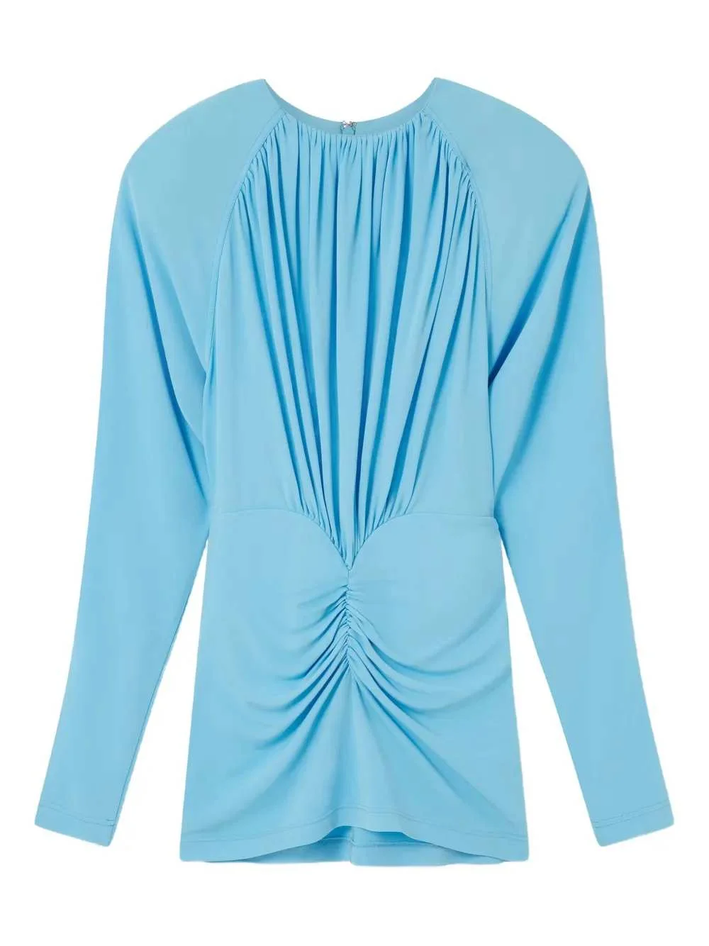 Short Draped Dress Origin: Italy Features Blue Draped detail Mini length Long sleeves Composition Outer: 100% viscose Washing Instructions Read the manufacturer`s instructions ID 6A06393GU301 - Colour: Blue - Composition: Viscose, T: 100% VISCOSE - Country Of Manufacture: Italy - Dimension: 0,5 - MPN: 6A06393GU3014012NEWSKYBLUE