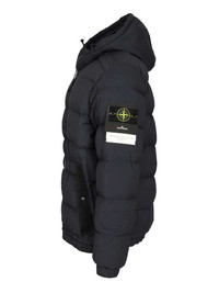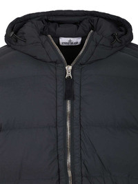 Padded hood with full-length horizontal drawstring. Vertical pockets with fixed flaps in contrasting herringbone webbing and snap closure. Stone Island badge on the left sleeve. Elasticated cuffs and hem. Two-way zip closure. - Colour: Blue - Composition: 84% Polyamide 16% Elastane Filling: 90% Duck Down 10% Duck Feather - Country Of Manufacture: VN - MPN: K2S154100040S0028V0020