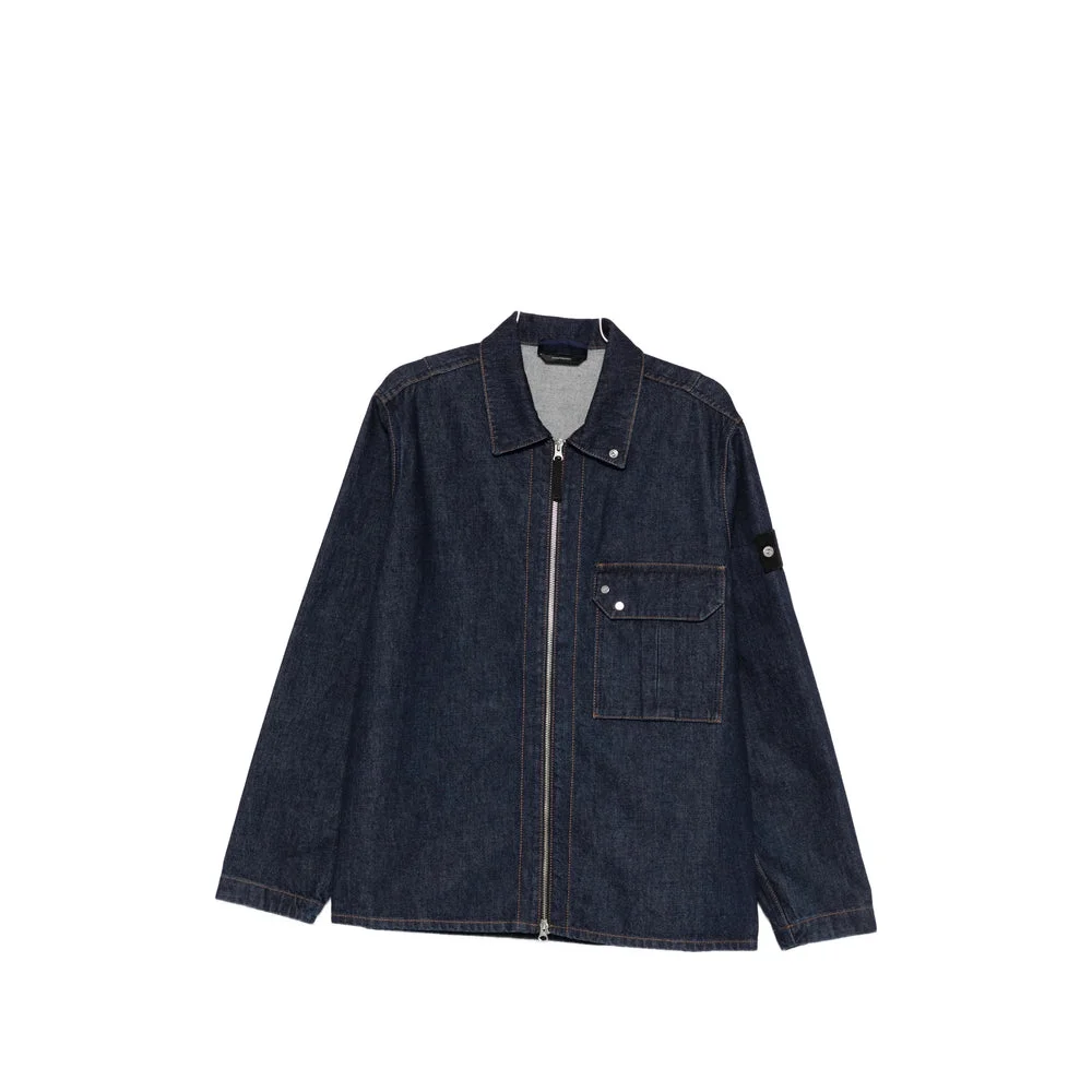 dark blue chest pocket logo patch point collar front zip fastening - Colour: Blue - Composition: Cotton: 100.0% - Country Of Manufacture: Romania - MPN: 141200002S00J7VJ201