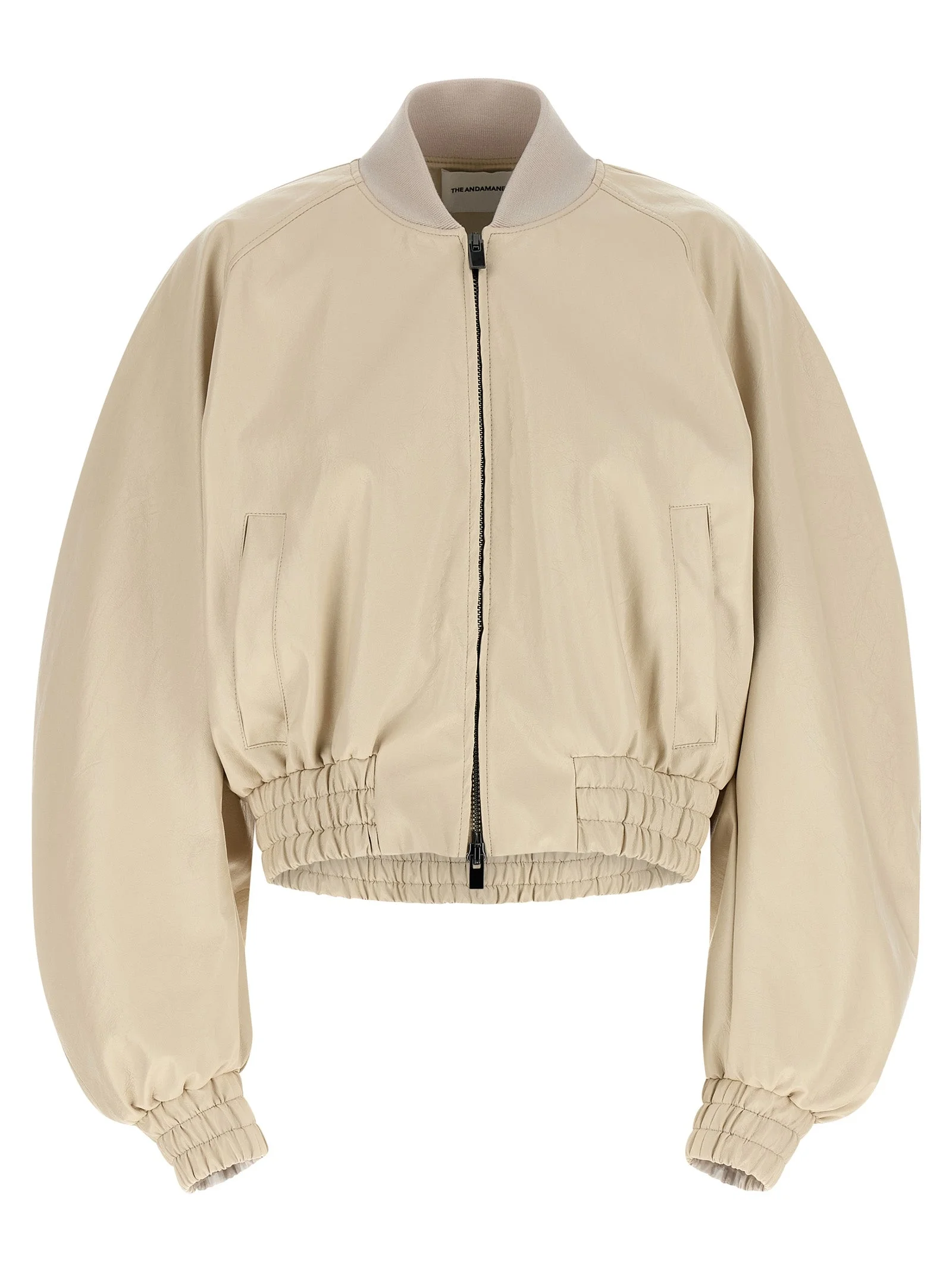 'Sierra' bomber jacket in grainy leather-effect fabric, ribbed stretch high neck, front zip closure, pockets, long sleeves with elastic cuffs and dropped shoulder, elastic hem. - Colour: Beige - Composition: 58% polyurethane 26% viscose 5% cotton 5% af 4% polyester 2% metal - Country Of Manufacture: Italy - Dimension: oversized fit - MPN: T192016ATNP262OAT