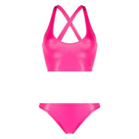 fuchsia pink stretch-design scoop neck rear criss-cross straps embroidered logo to the side classic bottoms Be mindful to try on swimwear over your own garments. - Colour: Pink - Composition: Outer Composition Polyamide: 82.0%, Lining Composition Polyamide: 84.0%, Outer Composition Spandex/elastane: 18.0%, Lining Composition Spandex/elastane: 16.0% - Country Of Manufacture: Italy - MPN: 233WBB64PA36008