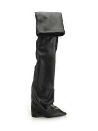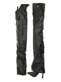 Thigh high boot ''Robin OTK'' in black synthetic leather by The Attico - Colour: Black - Composition: Main fabric: 55% polyurethane, 45% polyester. Insole and Lining: 100% goat leather dyed, capra hircus hircus farm raised coo: India, Sole: 100% bovine leather dyed, bos taurus farm raised coo: Western Europe, Heel 95mm. - Country Of Manufacture: IT - Dimension: T. 95mm - MPN: 250WSH00872PUR003AA100