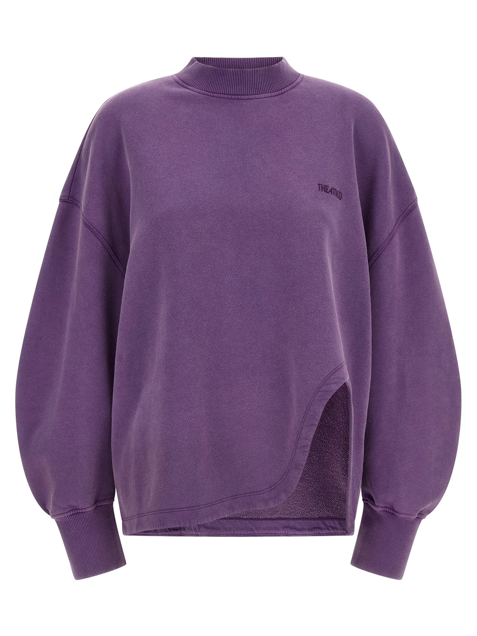 American faded fleece sweatshirt with tone-on-tone logo embroidery on the front, crew neck, long sleeves with cuffs and dropped shoulder, front shaped split, asymmetrical hem. - Colour: Purple - Composition: 100% cotton - Country Of Manufacture: Portugal - Dimension: oversized fit - MPN: 260WCF00024035