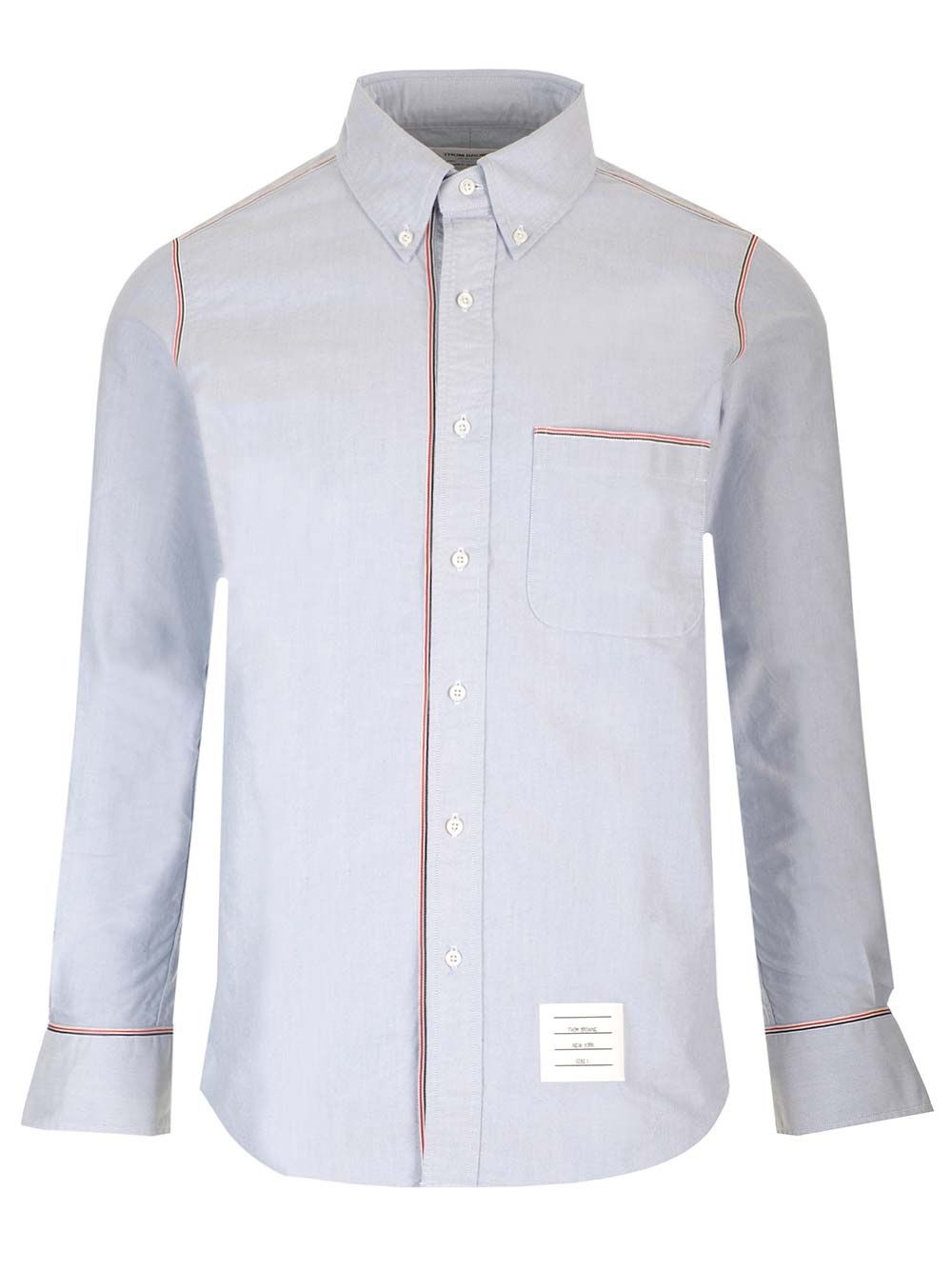 White Oxford shirt from Thom Browne with blue and red profiles, slim fit, chest pocket, buttoned cuffs. - Colour: Blue - Composition: 100% cotone - Country Of Manufacture: IT - MPN: MWL406AF0313480