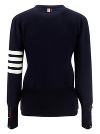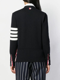 Striped Sleeve Cardigan Cotton V-neck cardigan by Thom Browne. Featuring a V-neck, front button fastening, side stripe detail, two front pockets, buttoned cuffs, a ribbed hem and cuffs, a side button closure, and the iconic three-stripe detail. Origin: Italy Composition 100% cotton Care Instructions Dry clean only ID FKC207A00219 - Colour: Blue - Composition: Cotton, 100% COTTON - Country Of Manufacture: Not Selected - MPN: FKC207A00219NAVY415