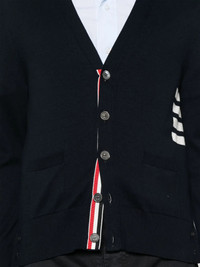 V-Neck Cardigan Origin: Italy Features navy blue cotton fine knit distinctive 4-stripe detail distinctive grosgrain detail distinctive grosgrain side details ribbed trim v-neck button-up front closure long sleeves button-up hems two side patch pockets straight hem Composition 100% cotton Washing instructions Hand wash Brand ID: MKC581AY3043 - Colour: Blue - Composition: Cotton - Country Of Manufacture: Not Selected - Dimension: KG 0,5 - MPN: MKC581AY3043NAVY415