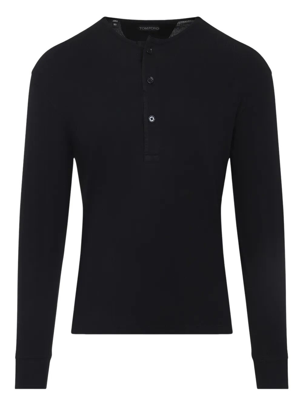 Henley Cotton Stretch Ribbed Long Sleeved T-Shirt - Colour: Black - Composition: Cotton, 95% Cotton, 5% Elastane - Country Of Manufacture: Portugal - MPN: JHL019JMC067LB999BLACK