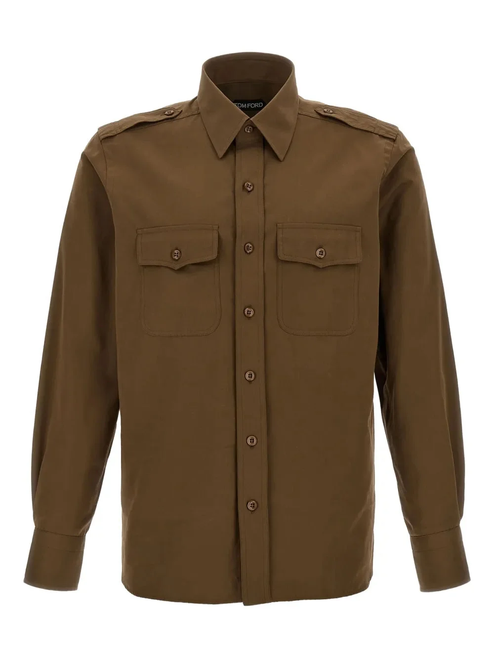 Military Patch-Pocket Cotton-Silk Blend Shirt