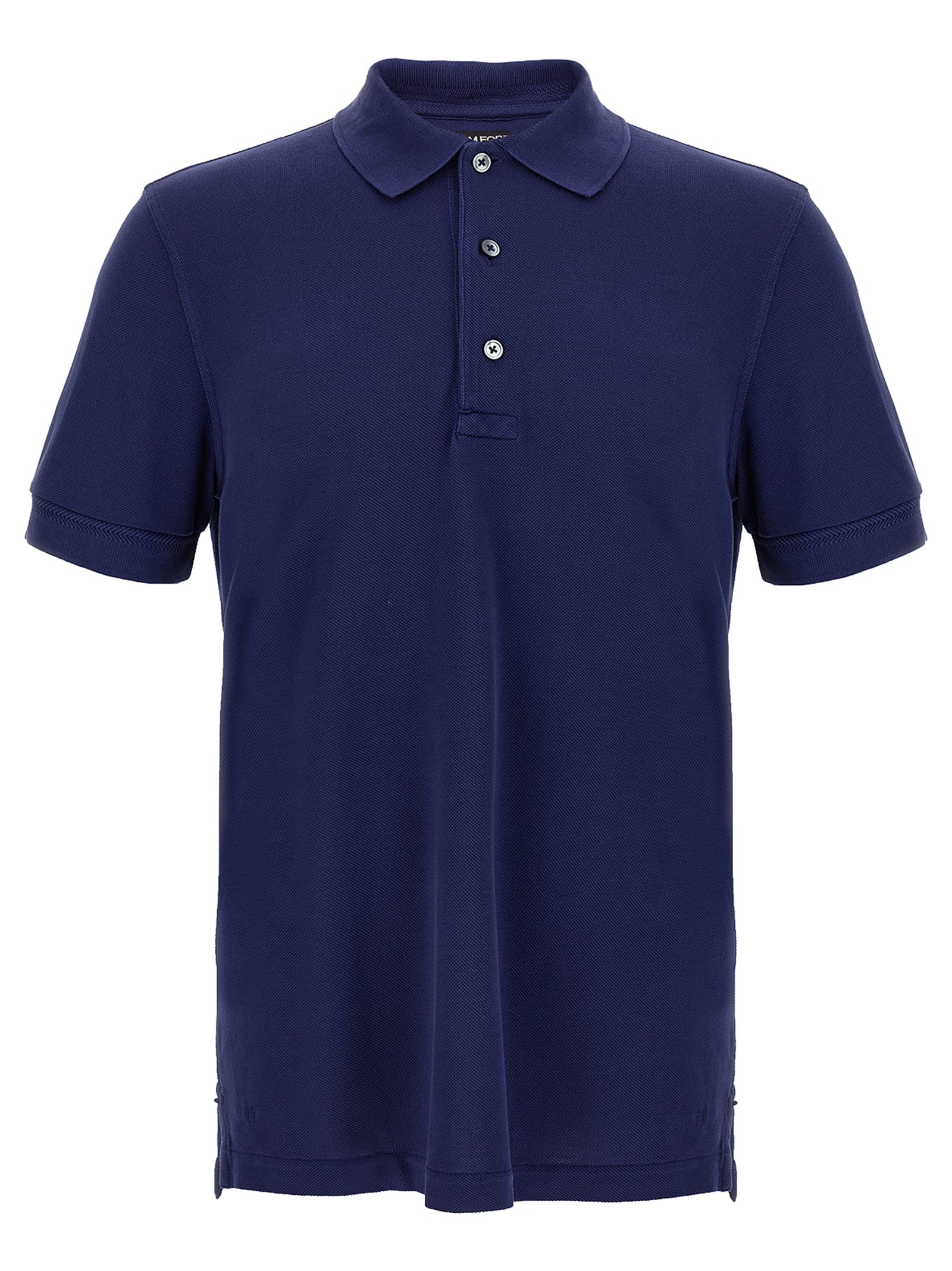 Cotton and lyocell blend polo shirt with pique pattern, tone-on-tone logo embroidery on the front, collar and buttons, side slits, and short sleeves. - Colour: Blue - Composition: 67% lyocell 33% cotton - Country Of Manufacture: Portugal - Dimension: true to size fit - MPN: JPS011JMT013HB905