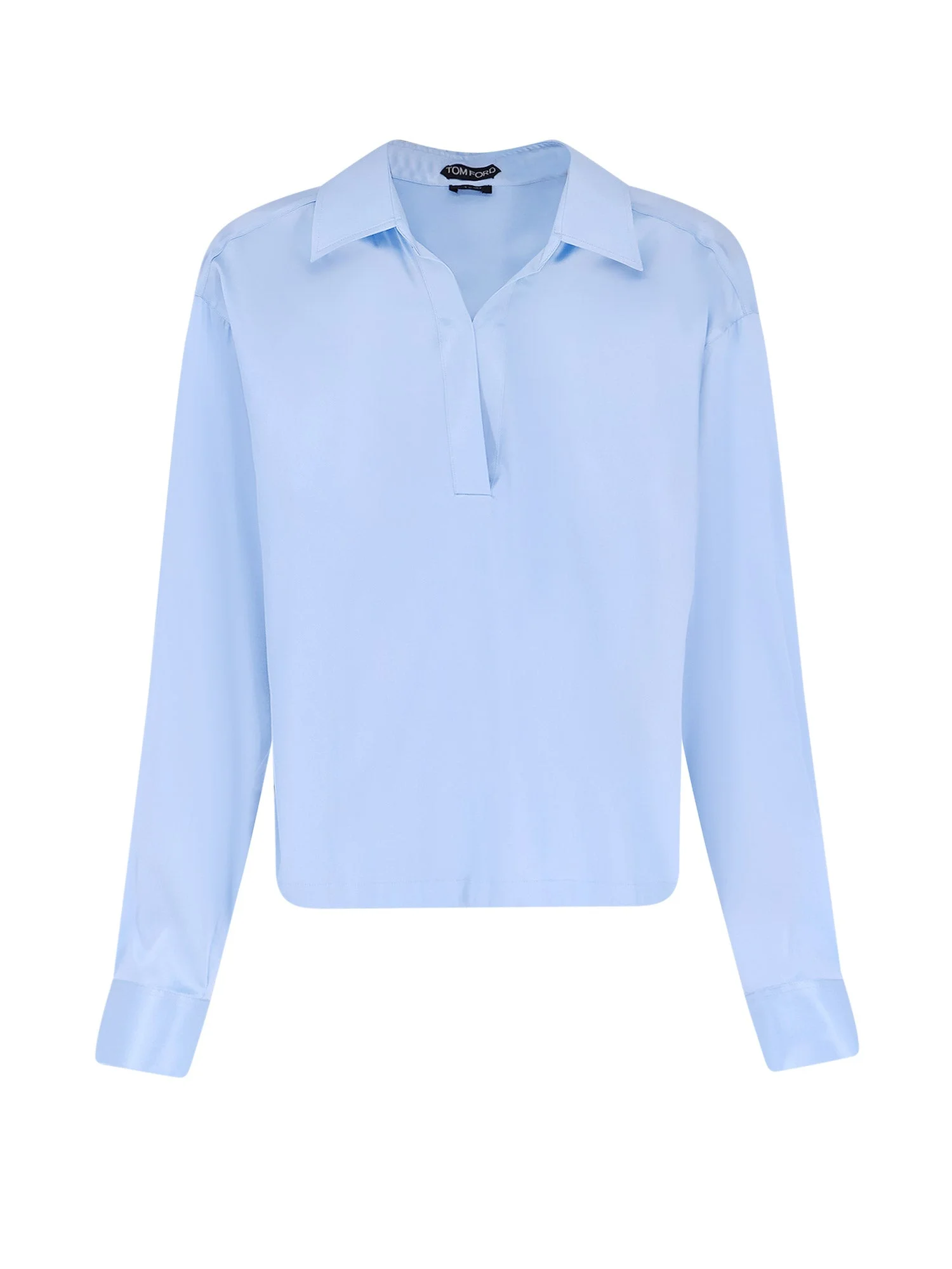 No Closure V-neckline with pointed collar Long sleeves with cuffs and covered buttons Side slits Made in Italy 94% silk, 6% elastane SKU: TS2144FAX881UAC - Colour: FROST - Composition: 94% seta 6% elastan - Country Of Manufacture: ITALIA - MPN: TS2144FAX881UAC