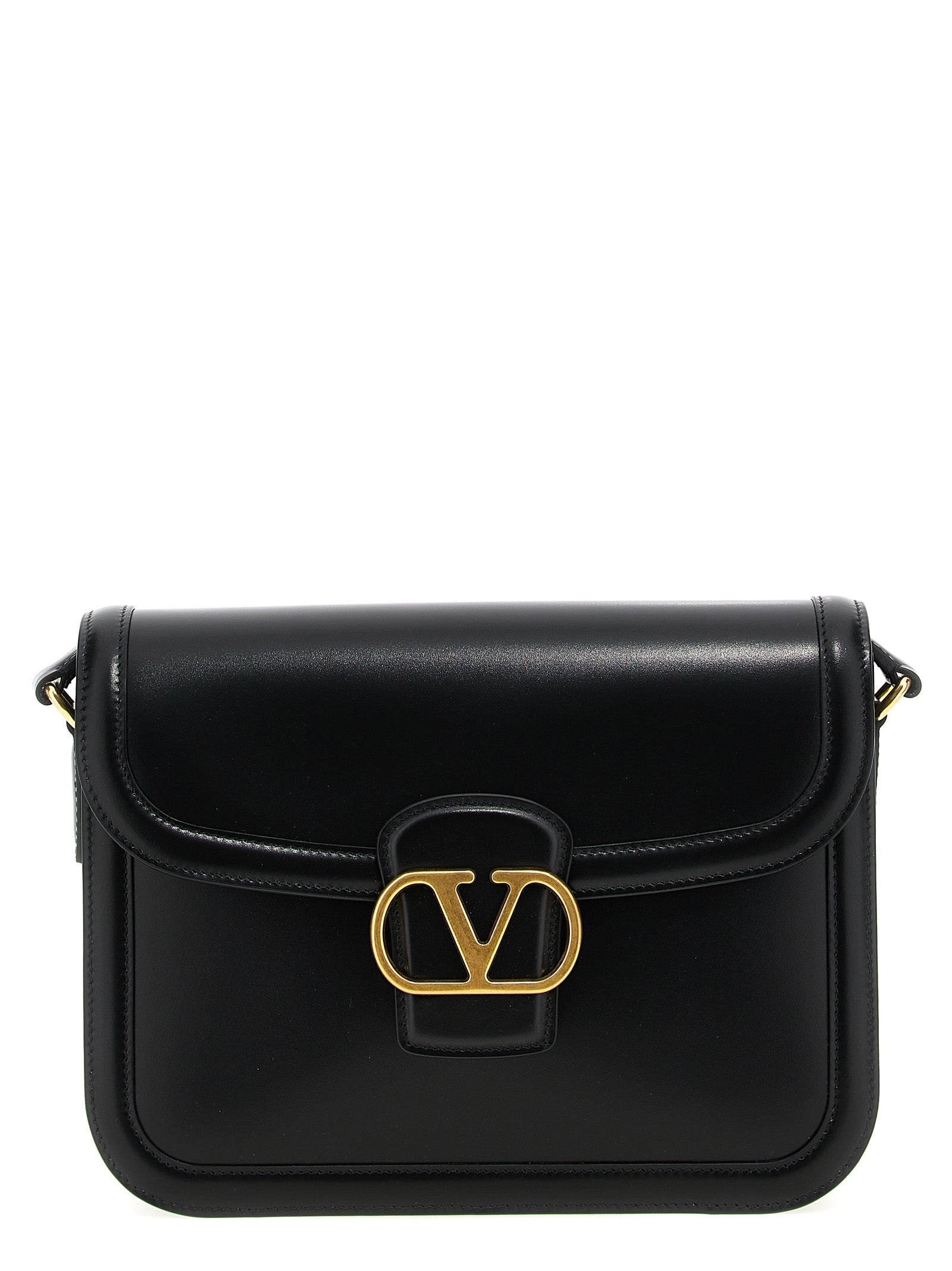 '9TO5' shoulder bag in smooth calf leather, magnetic flap closure with metallic VLogo Signature with front antique finish, adjustable shoulder strap. This model has an additional portion of shoulder strap that can be attached to the bag thanks to buckles. - Colour: Black - Composition: 100% calfskin leather (Bos Taurus) - Country Of Manufacture: Italy - Dimension: W 24.5 x H 18.5 x D 8 cm - MPN: Y2B0D05ECH0NO