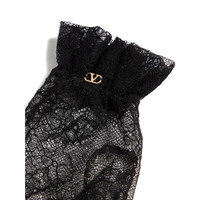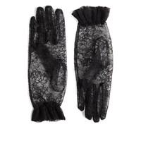 black intricate lace design ruffled cuff detailing logo embellishment fingertip coverage - Composition: Polyamide: 61.0%, Viscose: 39.0% - Country Of Manufacture: Italy - MPN: 7W2GD00FYCCN06
