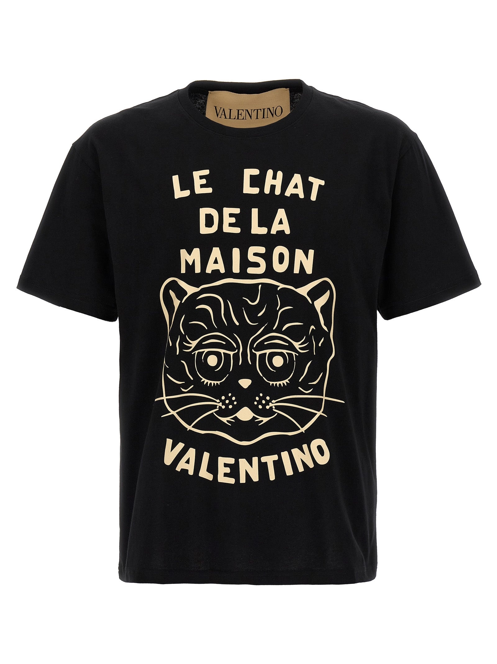 Cotton T-shirt with front 'Le Chat de la Maison' print, crew neck, short sleeves. - Colour: Black - Composition: 100% cotton - Country Of Manufacture: Italy - Dimension: true to size fit - MPN: V3MG16PB329RA