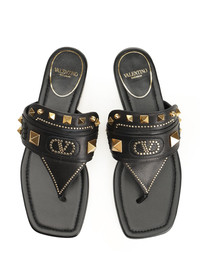 Valentino Garavani "Plaster Caster" buffalo leather flip-flop featuring a leather patch with a VLogo Signature detail, antique brass-finish metal rivet appliques, antique brass-finish metal studs and cabochons. - Colour: Black - Composition: BL100% - Country Of Manufacture: IT - Dimension: T. 5mm - MPN: 6W2S0LQ8ZQF0NO