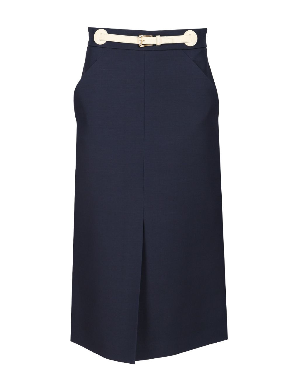 Skirt - With Leather Details | Solid | Crepe Couture Skirts Blue