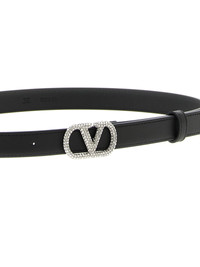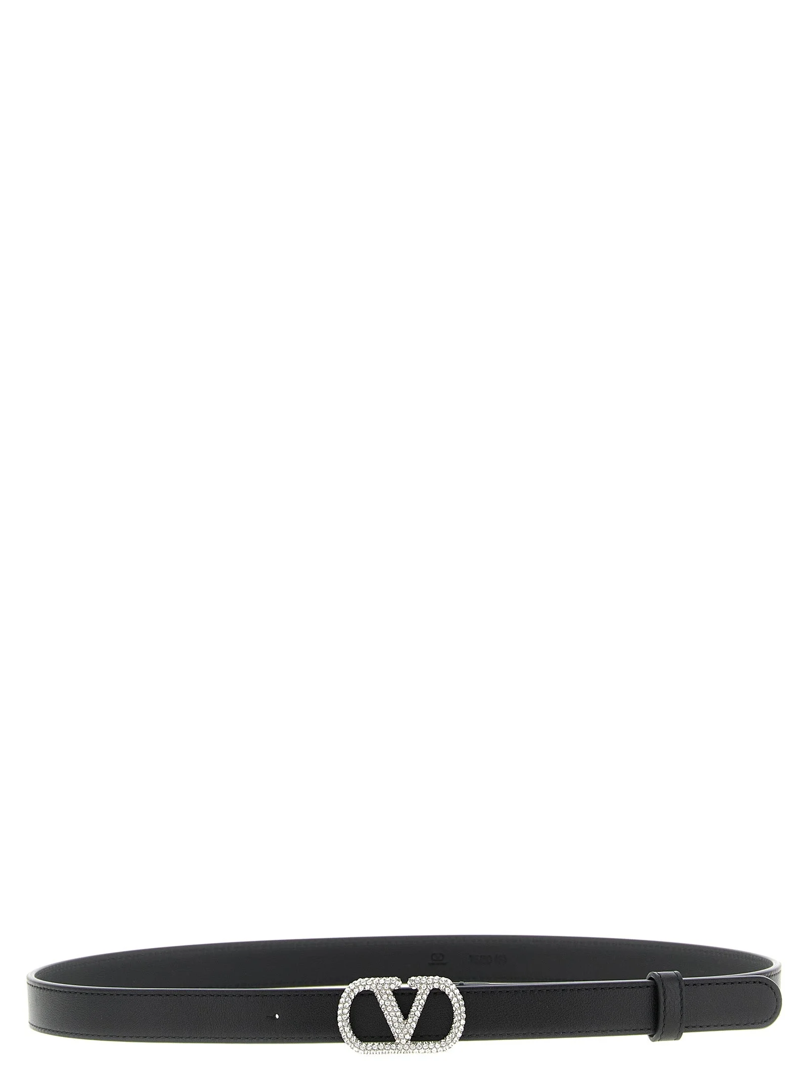 Calf leather belt with VLogo Signature buckle covered in Swarovski crystals®. - Colour: Black - Composition: 100% calfskin leather (Bos Taurus) - Country Of Manufacture: Italy - Dimension: H 2 cm - MPN: W2T0SM7DHQ0NO