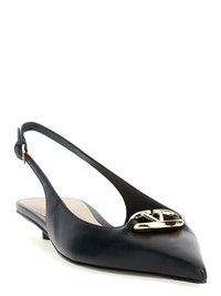 Leather slingback shoes with gold metal 'VLogo The Bold Edition' applique on the front, adjustable strap. - Colour: Black - Composition: 100% calfskin leather (Bos Taurus) - Country Of Manufacture: Italy - Dimension: EU WOMEN - MPN: 5W2S0IY1EEY0NO