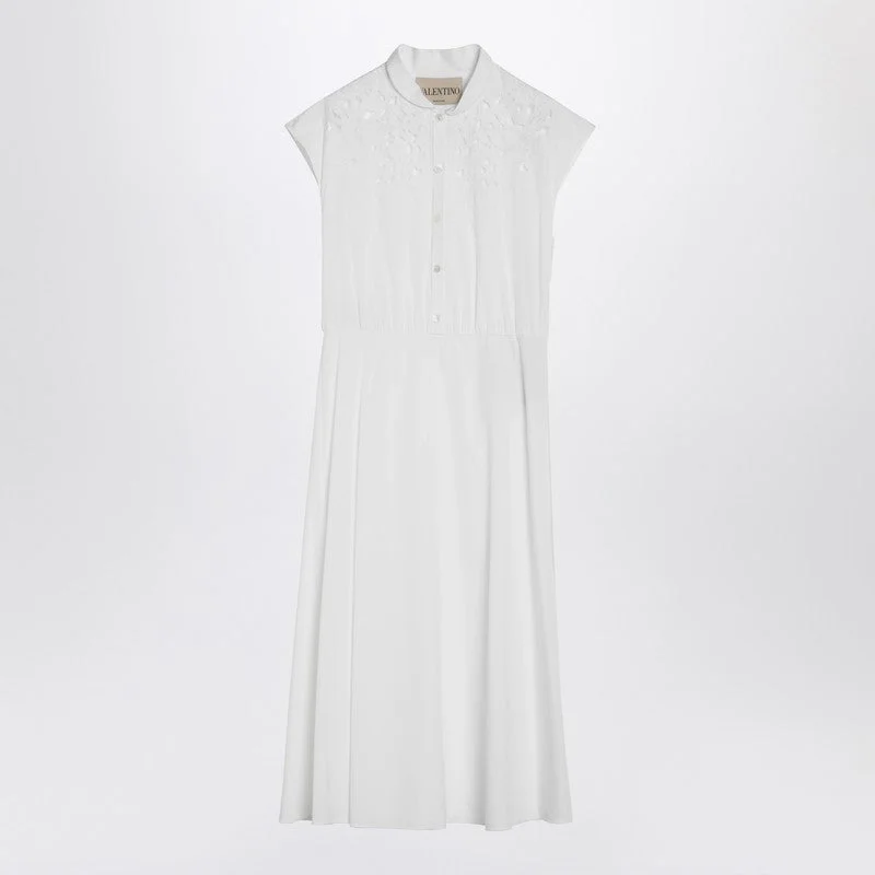 EMBROIDERED POPLIN MIDI DRESS